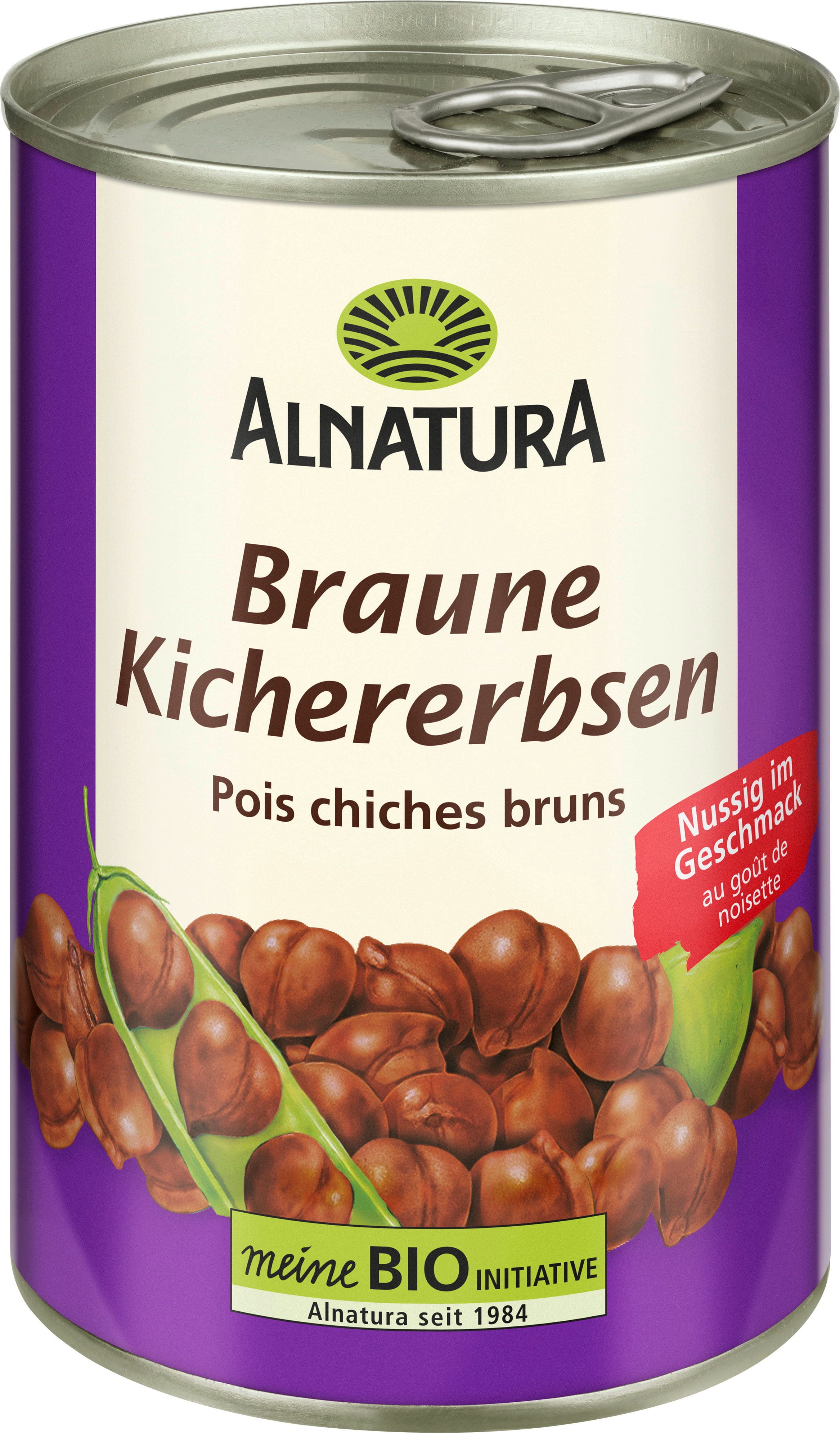 Die Alnatura Braunen Kichererbsen eignen sich besten, wenn es schnell gehen muss: Die aus Italien stammenden Kichererbsen überzeugen mit ihrem nussigen Geschmack und sind ein idealer Begleiter von Salat, Dal und Currys. Auch optimal für die Herstellung von Hummus und Falafeln.