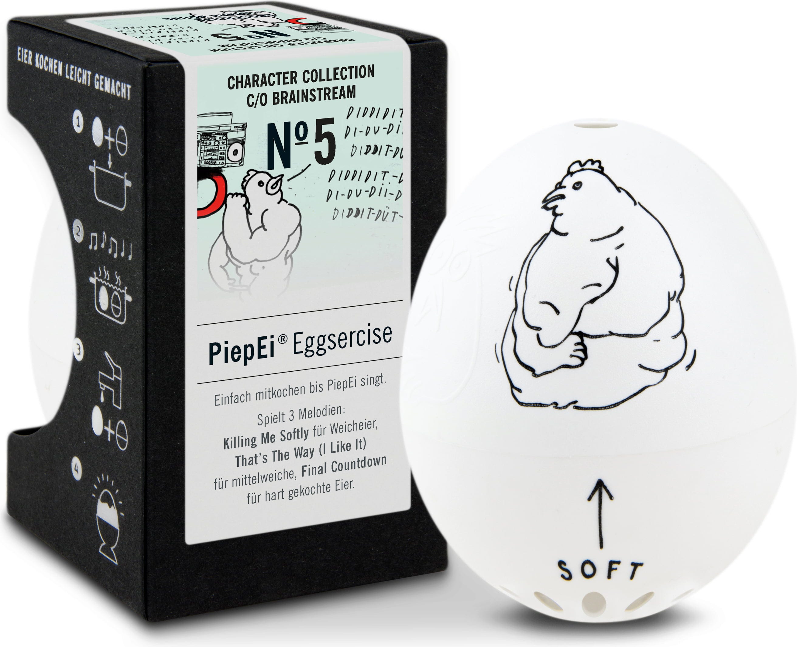 Man kennt es – gekochte Eier sind eine Wissenschaft für sich: Mal ist das Ei zu hart, mal ist das Ei zu weich. Das Eggsercise PiepEi von Brainstream ist der ideale Assistent zu deinem perfekt gekochten Ei.