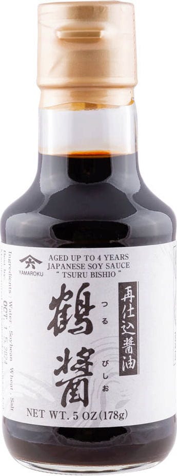 Die „Tsurubishio“ gehört zur Königsklasse der Sojasaucen. Als Saishikomi wird sie doppelt fermentiert und vier Jahre im Kioke-Holzfass ausgebaut. Das Ergebnis: ein außergewöhnlich dichter Geschmack mit bemerkenswerter Tiefe.
