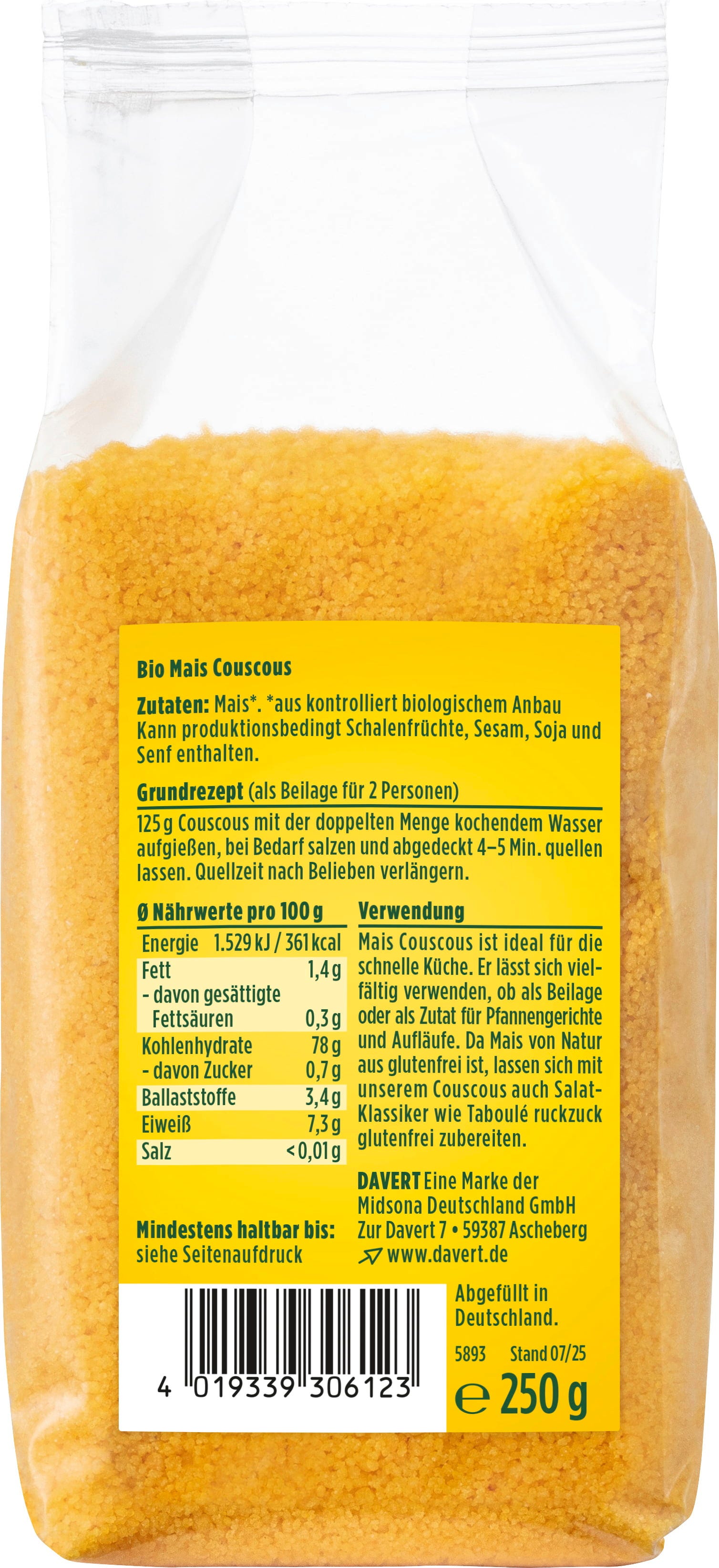 Erfahrungsberichte in Deutsch für Davert Bio Mais Couscous