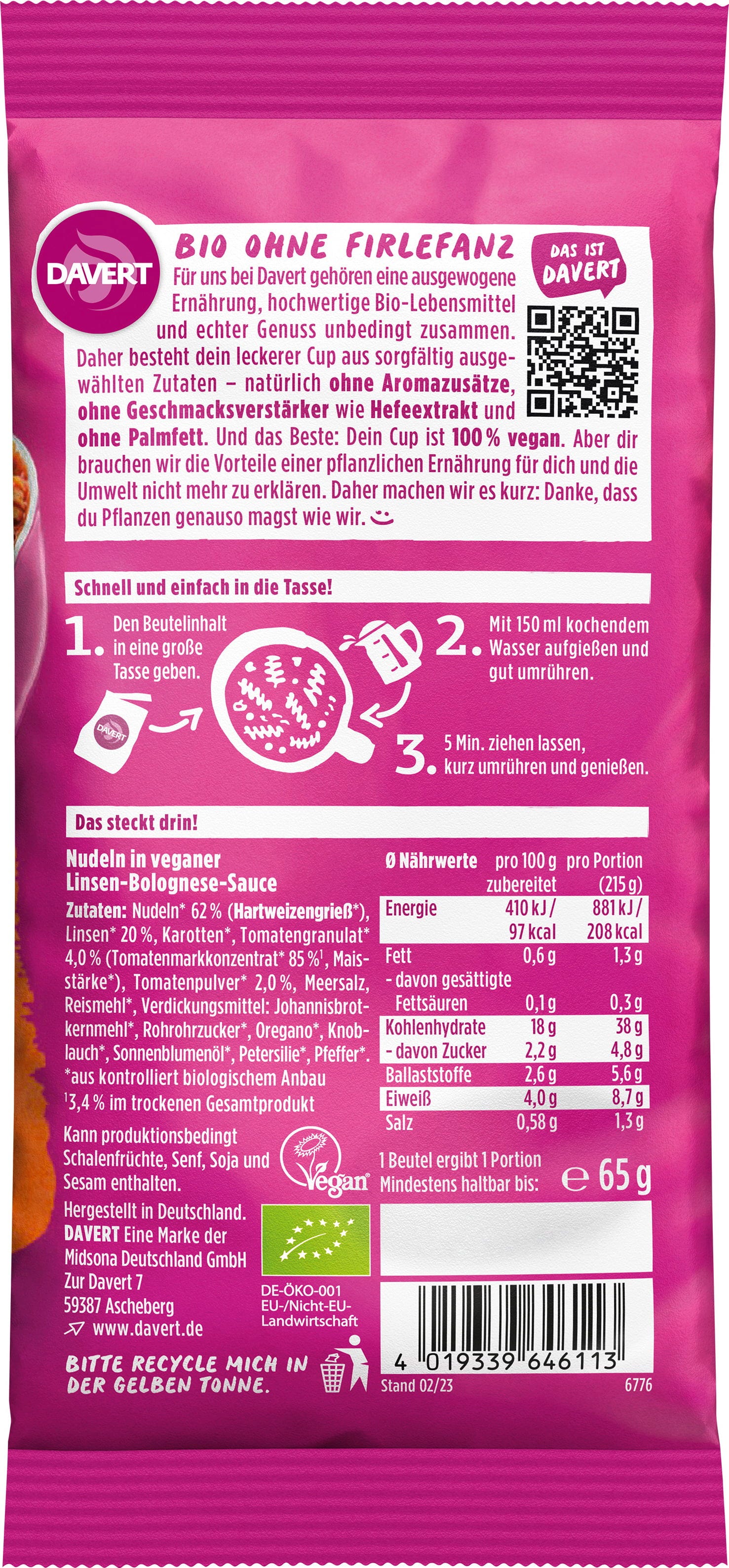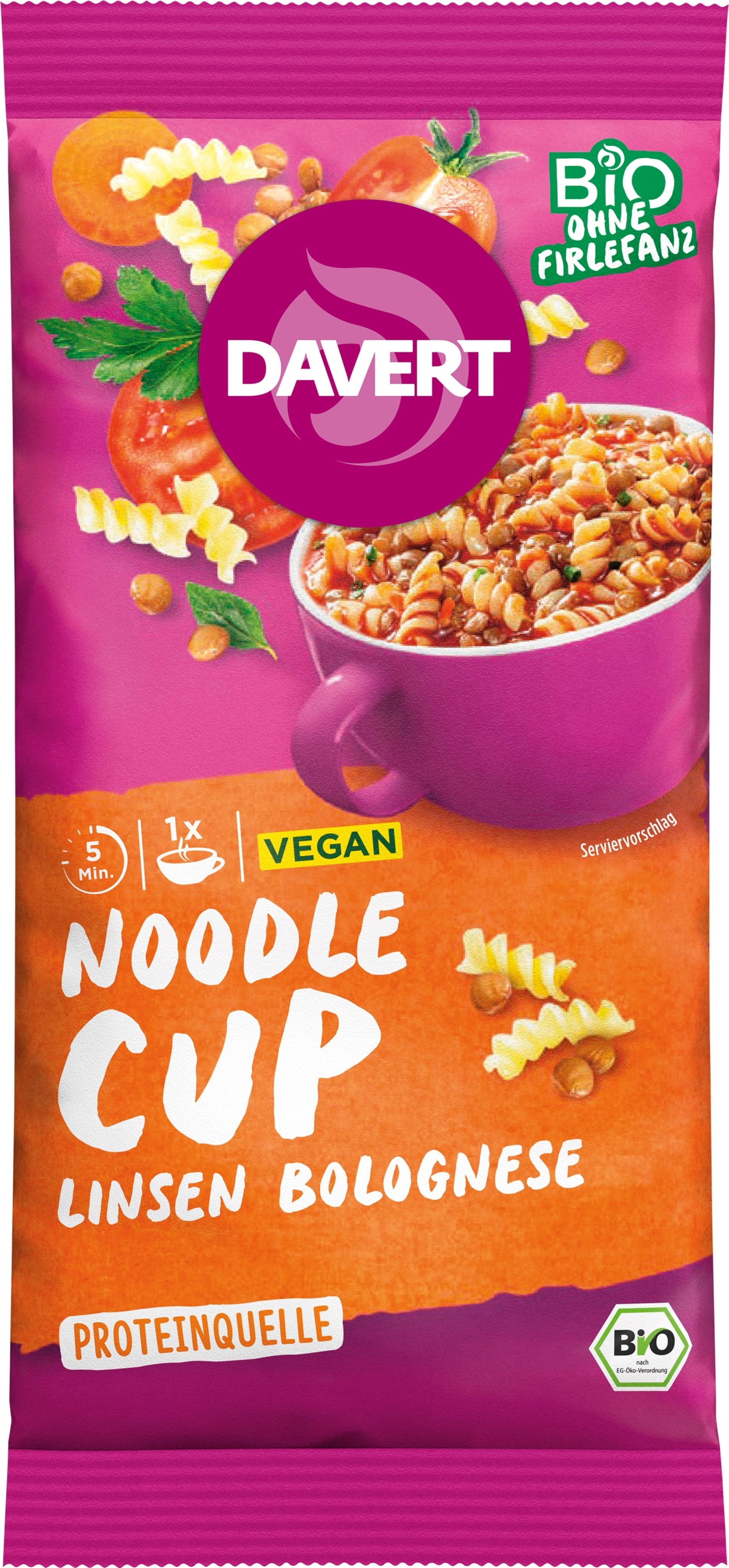Davert Bio Noodle-Cup Linsen Bolognese, 65 g