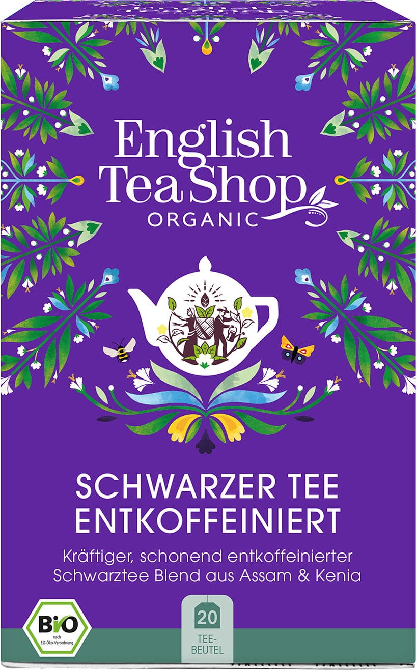 English Tea Shop Schwarzer Tee ENTKOFFEINIERT, koffeinfreier Tee, BIO, 20 Teebeutel