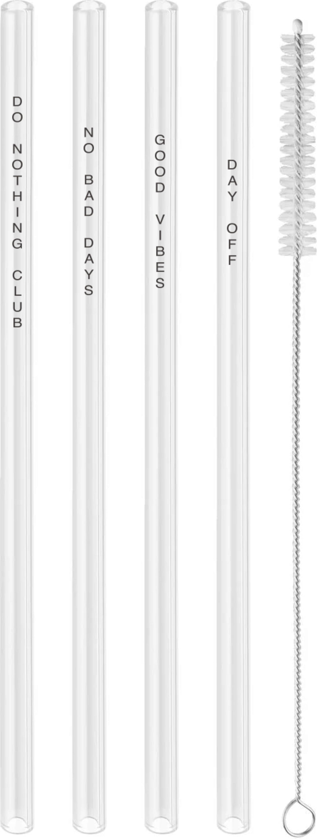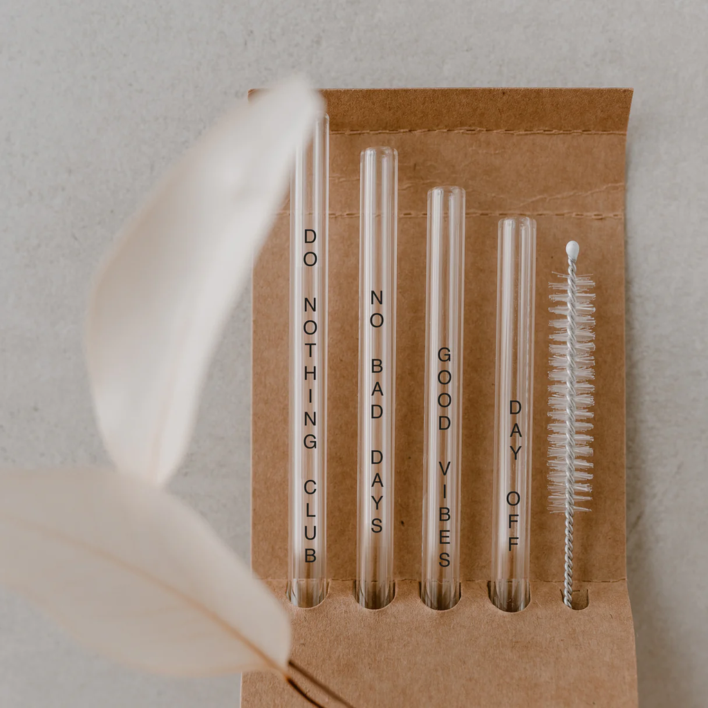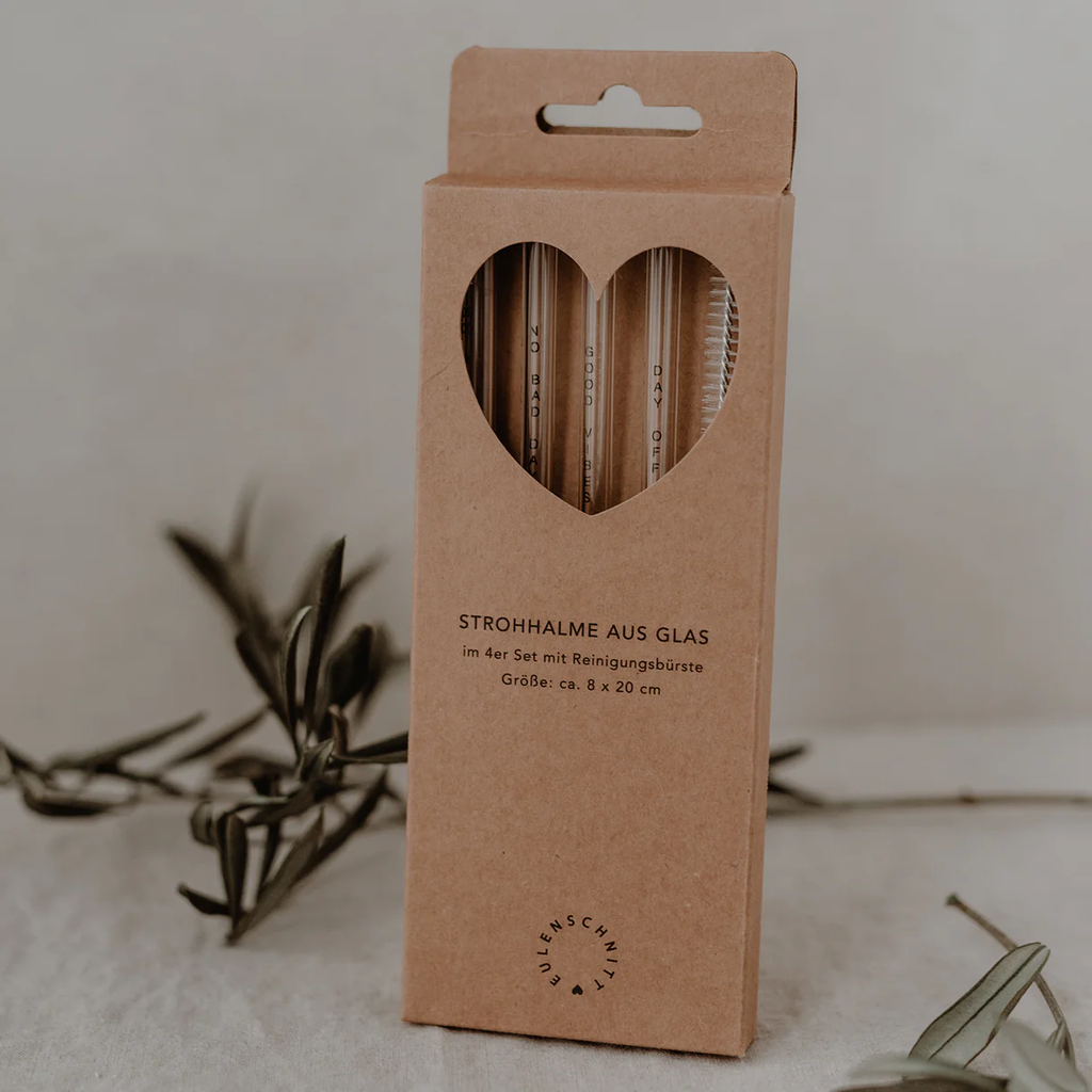 Hitzebeständige Strohhalme aus Borosilikatglas mit stilvollen schwarzen Akzenten. Gereinigt werden können die Strohhalme entweder in der Spülmaschine oder mit dem beiliegenden Bürstchen.