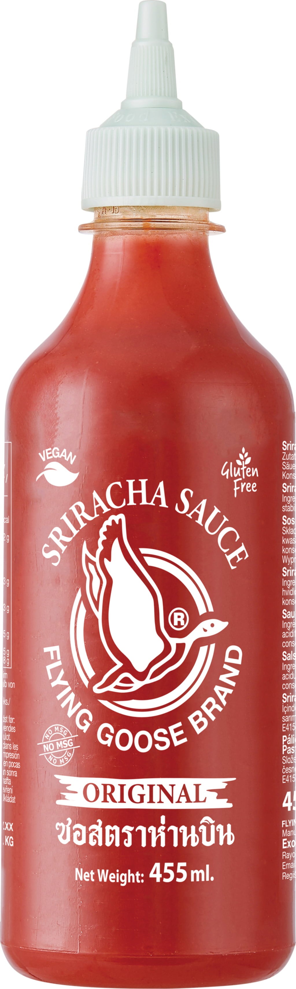 FLYING GOOSE Chilisauce Sriracha Scharf MSG free ohne Glutamat, 455 ml