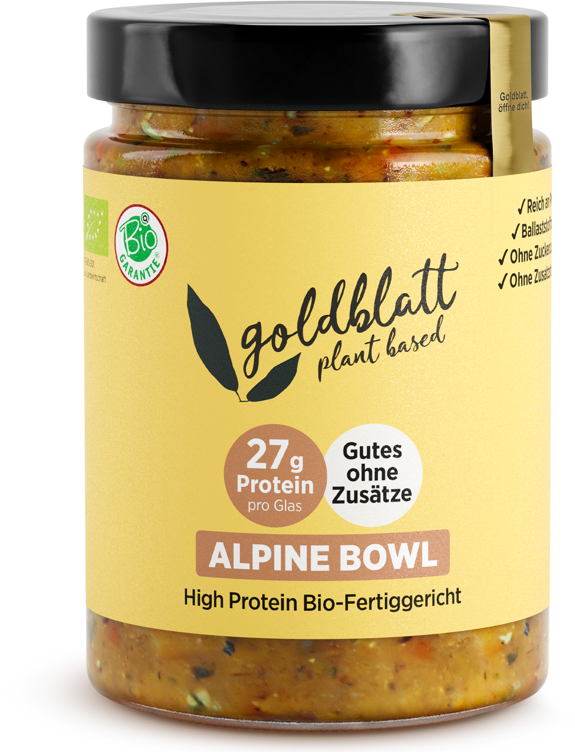 Erfahrungsberichte in Deutsch für Goldblatt Bio High Protein Fertiggericht Alpine Bowl