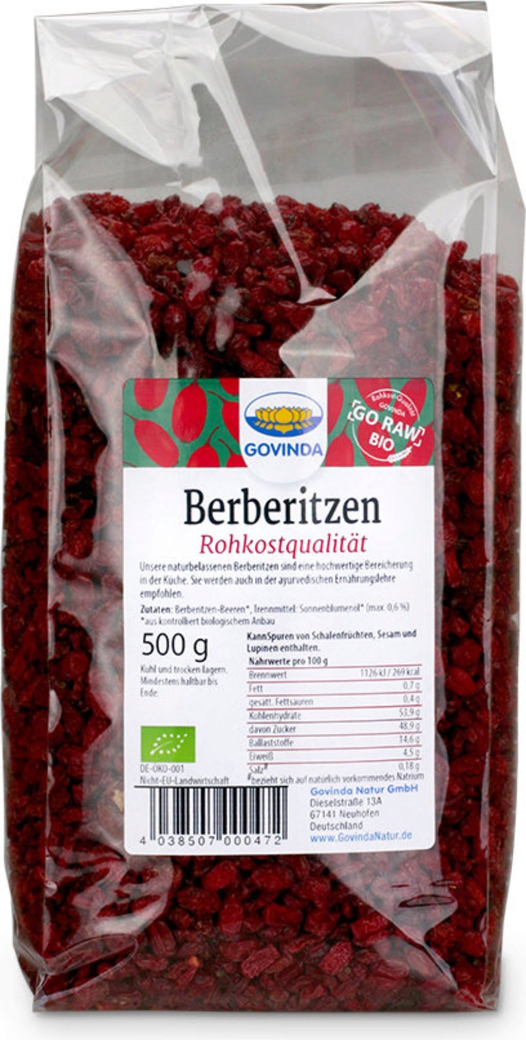 Die naturbelassenen, getrockneten Berberitzen werden auch in der ayurvedischen Ernährungslehre empfohlen. Mit ihrem feinen Geschmack und der schönen Farbe eignen sie sich nicht nur zum Naschen, sondern auch als feine Zutat beim Kochen und Backen.