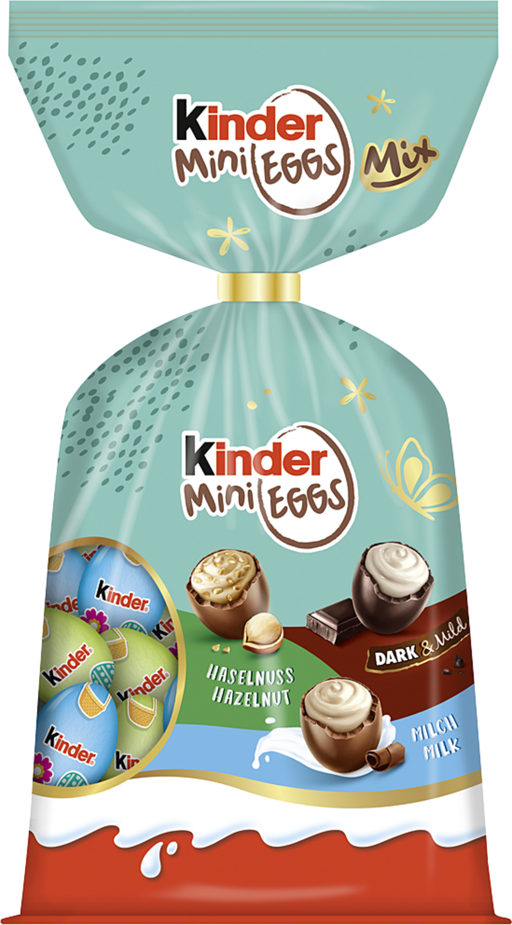 Der Mini Eggs Mix von Kinder Schokolade vereint Schokoladeneier in den Sorten Milch, Haselnuss und Dark & Mild in einer praktischen Mix-Packung – perfekt für alle, die Abwechslung beim Naschen lieben. Einzeln verpackt und daher ideal zum Teilen mit großen und kleinen Naschkatzen.