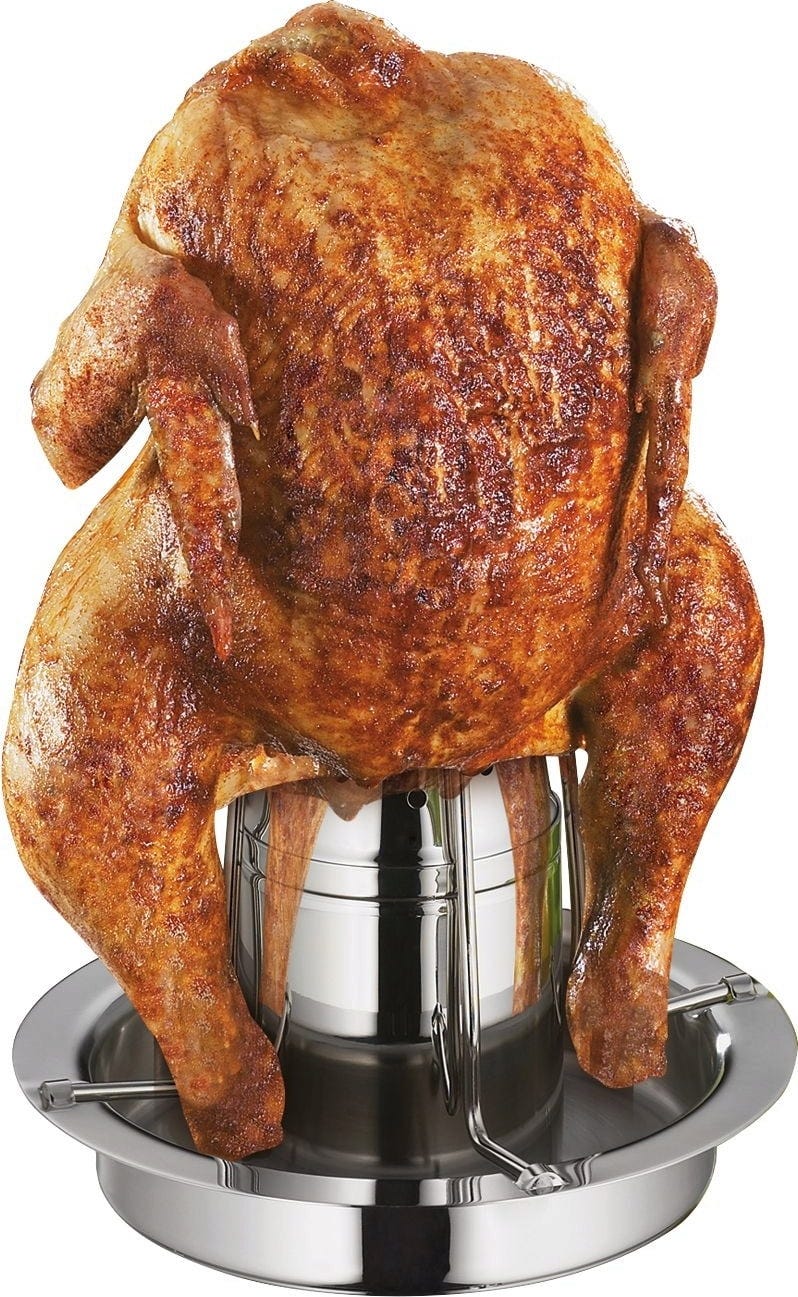 Perfekt für saftiges Hähnchen. Egal ob im Kugelgrill oder im Backofen, mit dem Hähnchengriller ADVANTAGE von Küchenprofi kannst du dich auf ein knuspriges Ergebnis freuen.