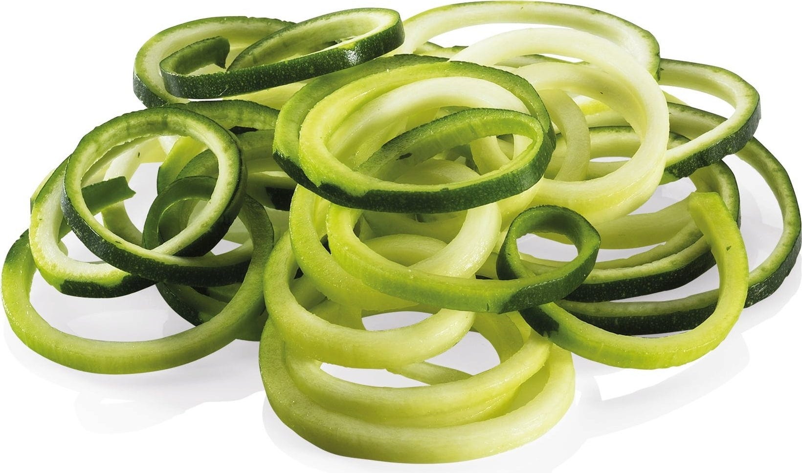 Die extrascharfen Messer des praktischen Spiralschneiders von Küchenprofi verwandeln Karotten, Zucchini, Rettich, Gurken & Co. im Handumdrehen in "Spaghetti". Die ideale Alternative zu herkömmlichen Nudeln mit der Extra-Portion Vitaminen.