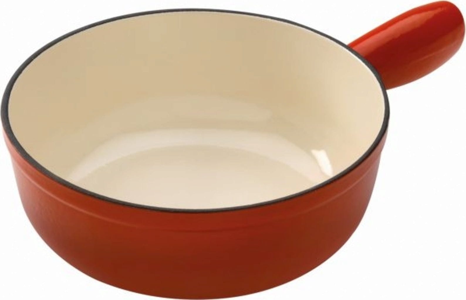 Mit diesem schlicht schönen Caquelon kannst du mit deiner Familie oder mit deinen Freunden länger das Käsefondue genießen als sonst, denn das Gusseisencaquelon sorgt dank seiner robusten Materialeigenschaften für eine gleichmäßige Wärmeleitung und speichert die Hitze optimal.
