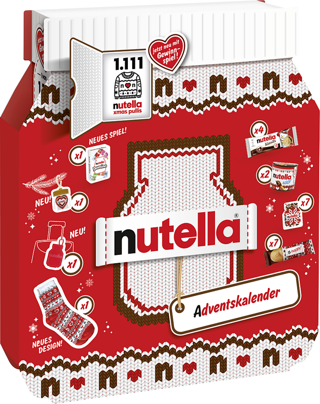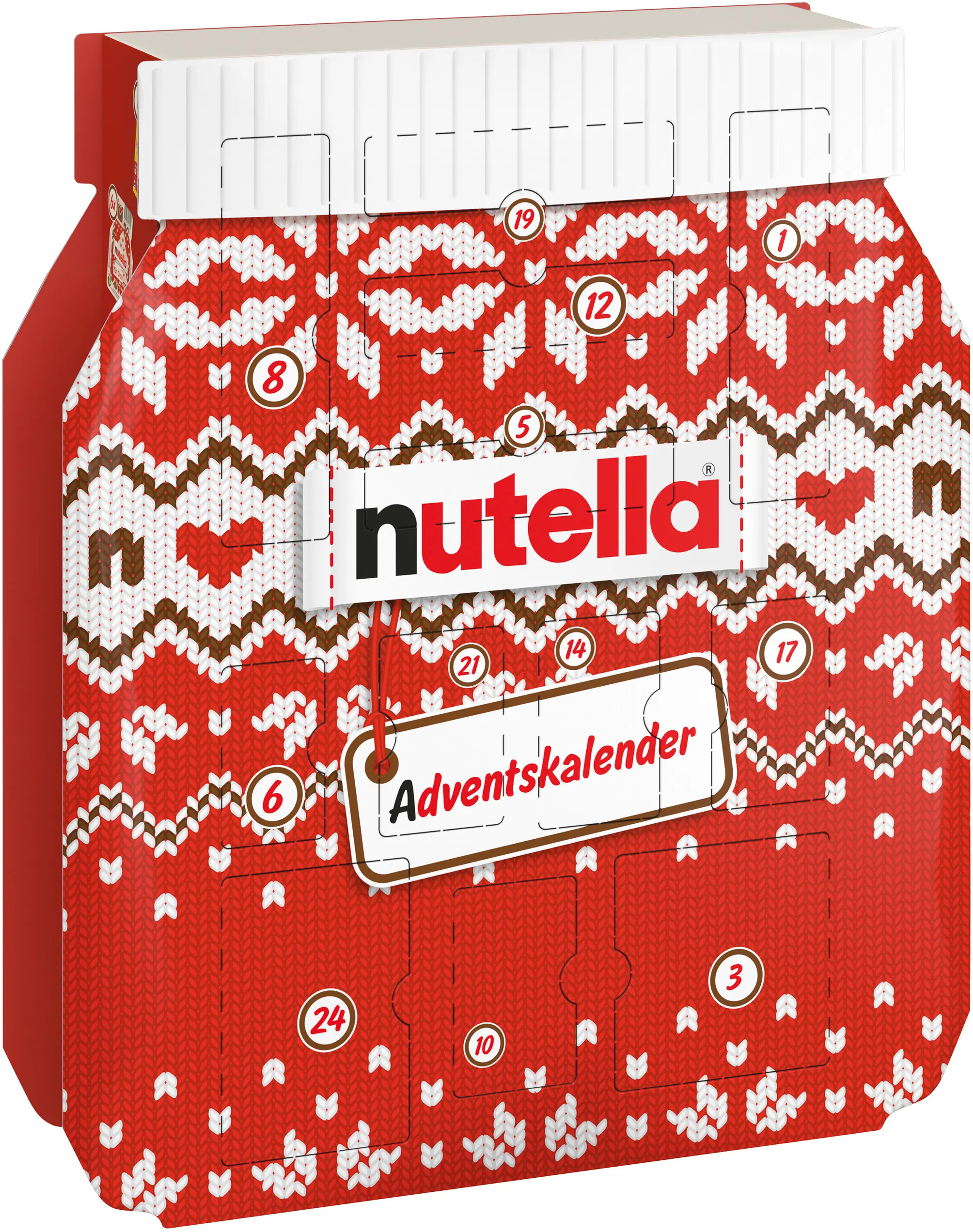 Versüße dir die Weihnachtszeit mit dem Adventskalender von nutella. Hier warten 20 Snacks mit unwiderstehlicher Nuss-Nougat-Creme und 4 Accessoires auf dich.