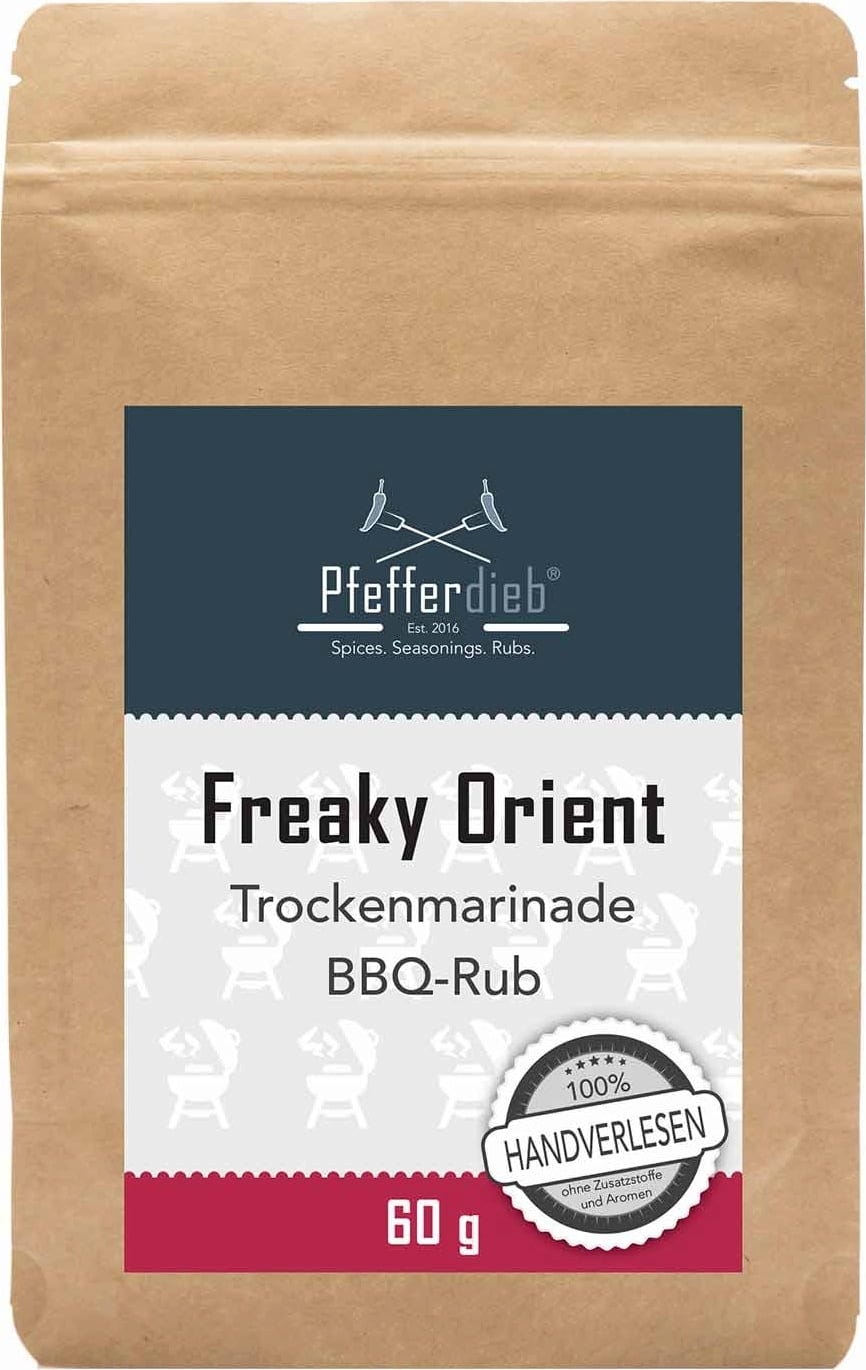 Pfefferdieb Freaky Orient - Premium Grillgewürz, Trockenmarinade, BBQ Rub, 60 g