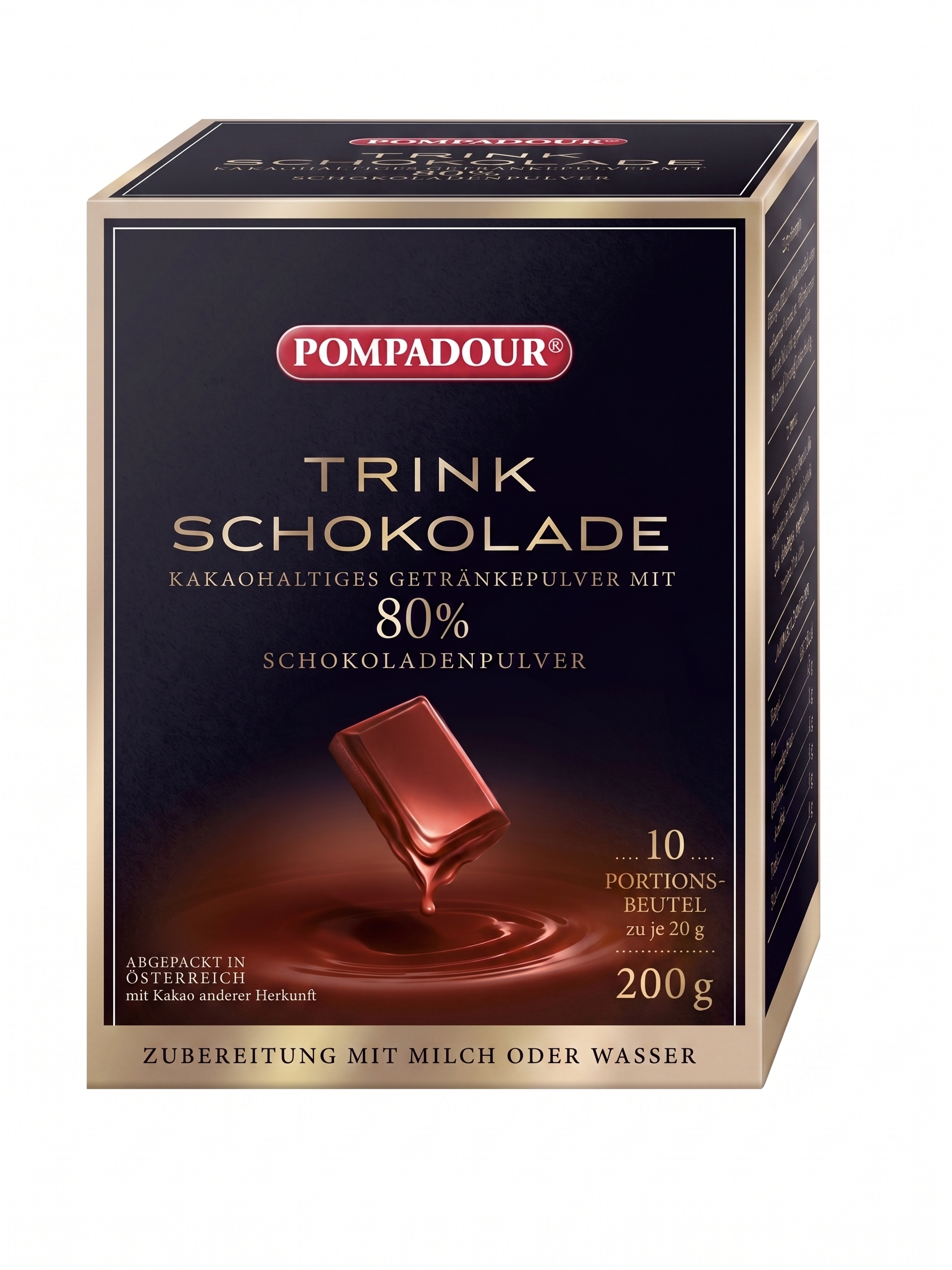 Pompadour Trinkschokolade, 80%, 200 g (Portionsbeutel)