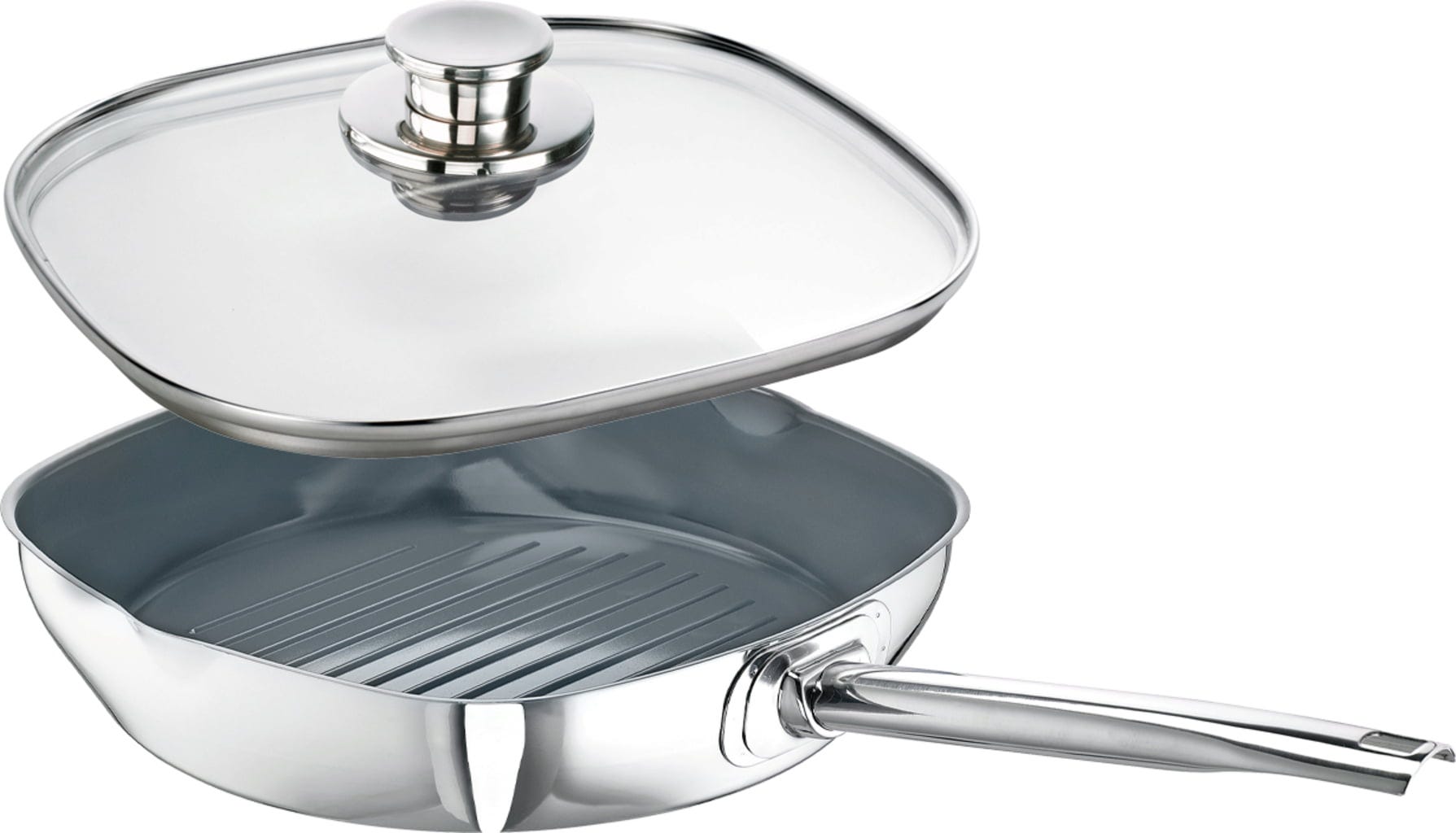 Material: Rostfreier Edelstahl 18/10, hochglanzpoliert, Keramikbeschichtung, Güteglas