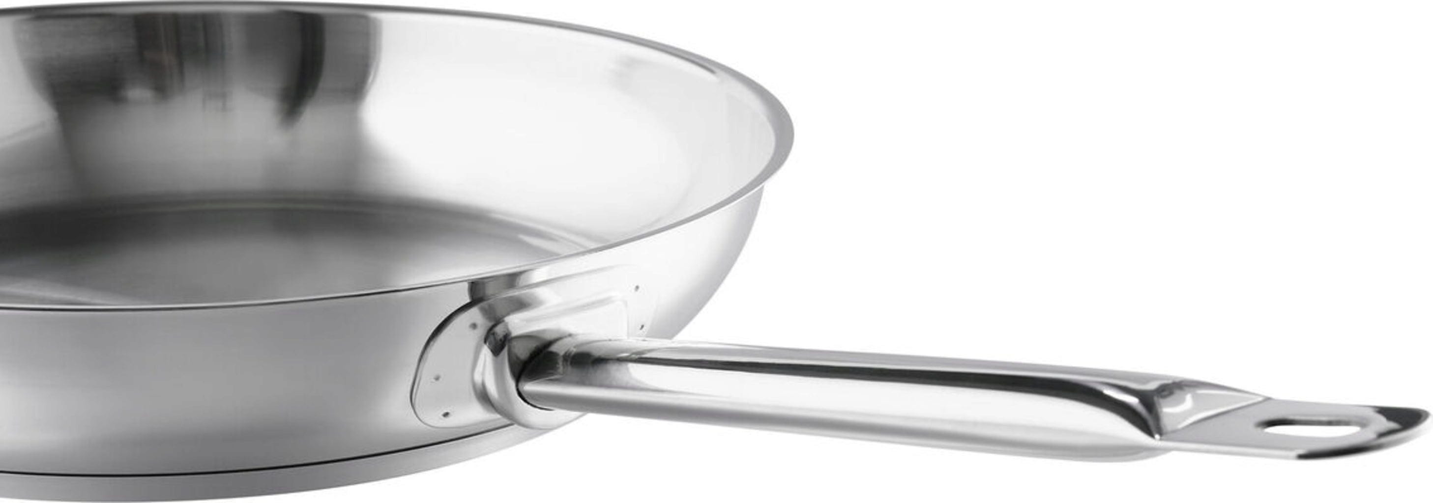 Gönne dir eine professionelle Bratpfanne zu einem erschwinglichen Preis. Zwischen dem Pfannen- und Induktionsboden aus Edelstahl ist ein Aluminiumkern eingearbeitet. So ist das Küchengeschirr nicht nur für alle Herdarten nutzbar, sondern spart auch Energie. Der starke Schüttrand macht ein tropffreies Abgießen möglich.