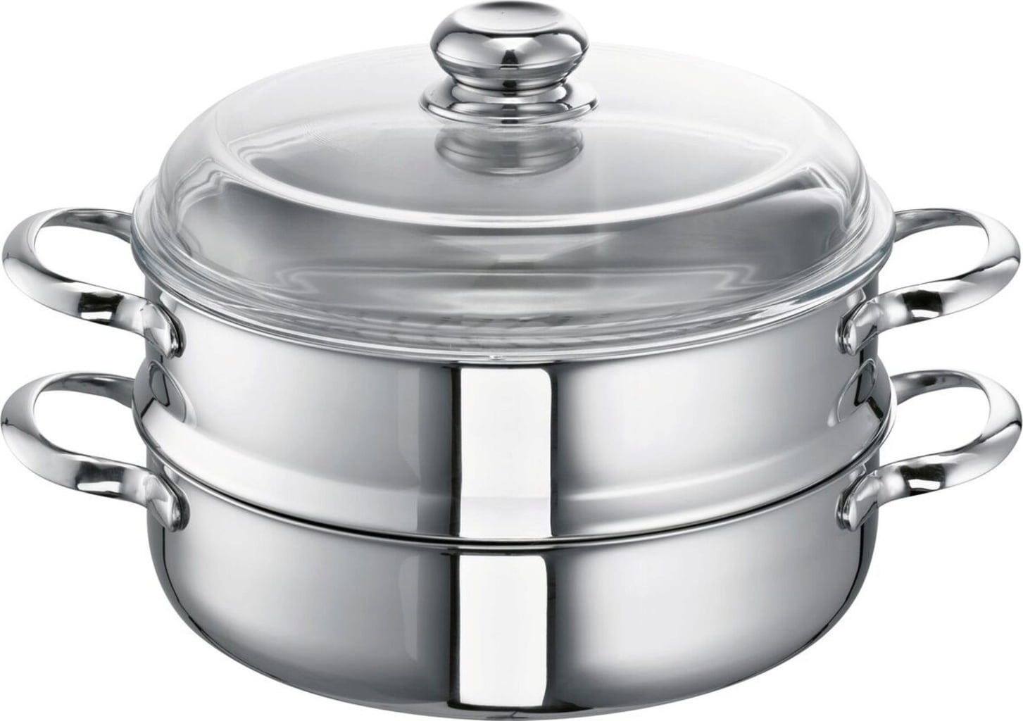 Topf, Dämpfaufsatz und Deckel - dieses hochwertige Trio darf in keiner gut eingerichteten Küche fehlen. Pflegeleicht und energiesparend dank rostfreiem Edelstahl mit speziellem protherm® Kupferboden. Letzterer sorgt zudem dafür, dass die Dämpfer-Kombi auf allen gängigen Herdplatten eingesetzt werden kann.