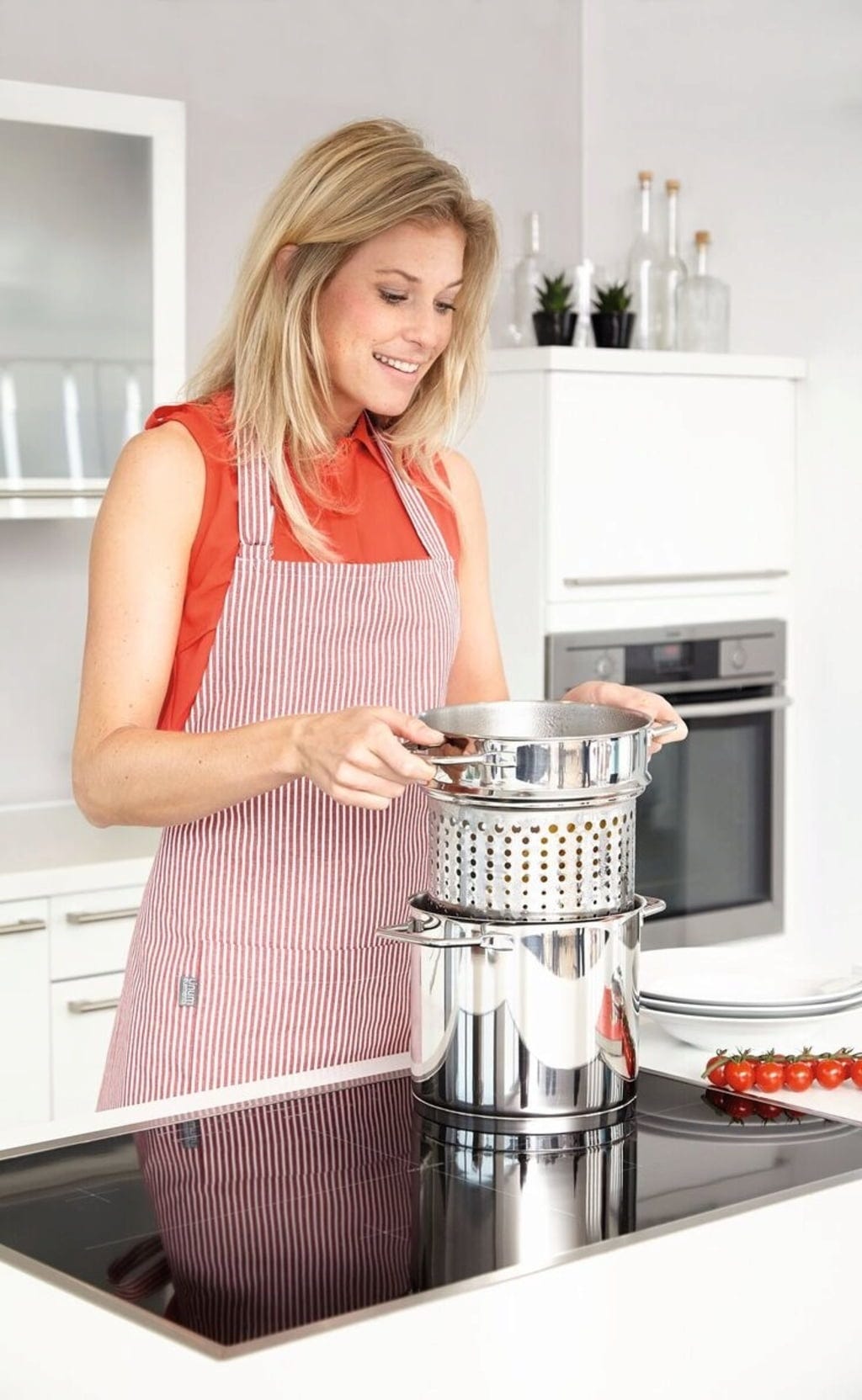 - Nudeln werden einfach mit dem Einsatz aus dem Topf genommen