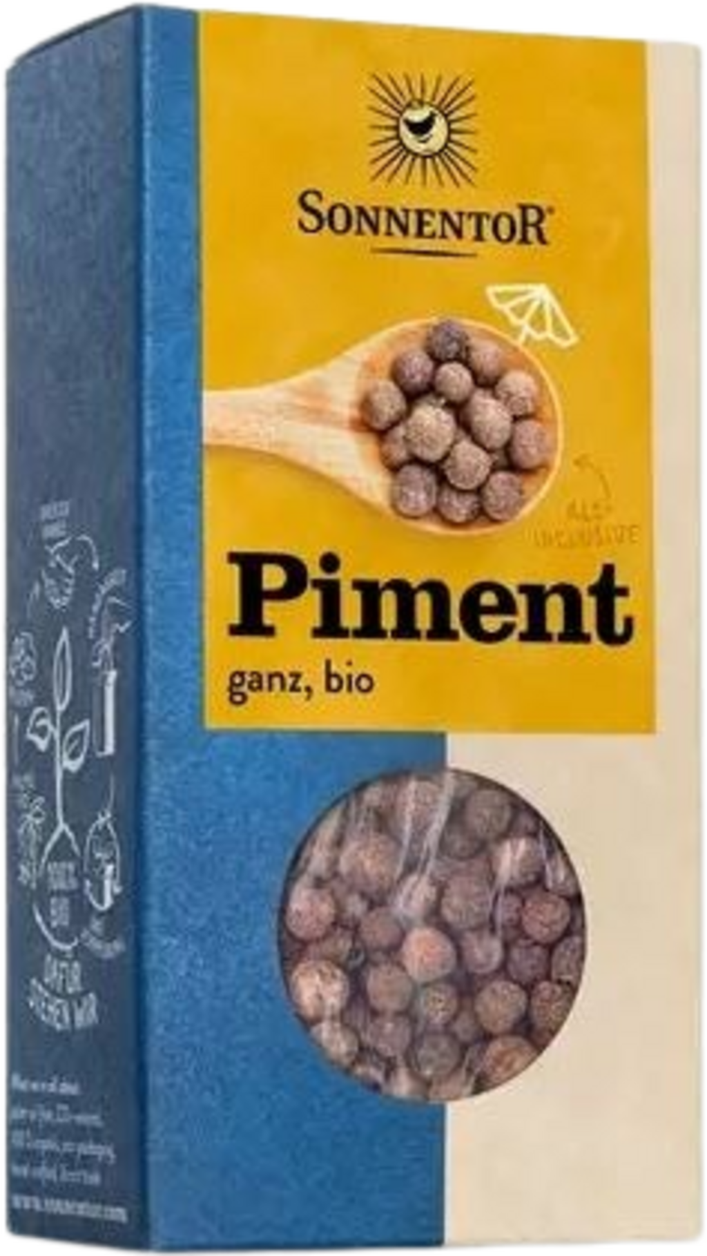 Bereits die Indianer würzten ihre Schokolade mit Piment. Sein Geruch ist sehr stark und aromatisch, ähnlich den Gewürznelken, mit einem Hauch von Zimt und Muskat und mit einer leichten Pfefferschärfe. Feines, aromatisches Gewürz für Fleisch- und Fischgerichte, Wildgerichte, Eintöpfe, aber auch Feinbackwaren oder Pfefferkuchen. Piment findet ebenso Verwendung in verschiedensten Saucen, Marinaden, Gemüse, pikante Salaten und Obstsalaten und in viele Gewürzmischungen, z.B. für Glühwein, Weihnachtsgebäck und Curry.