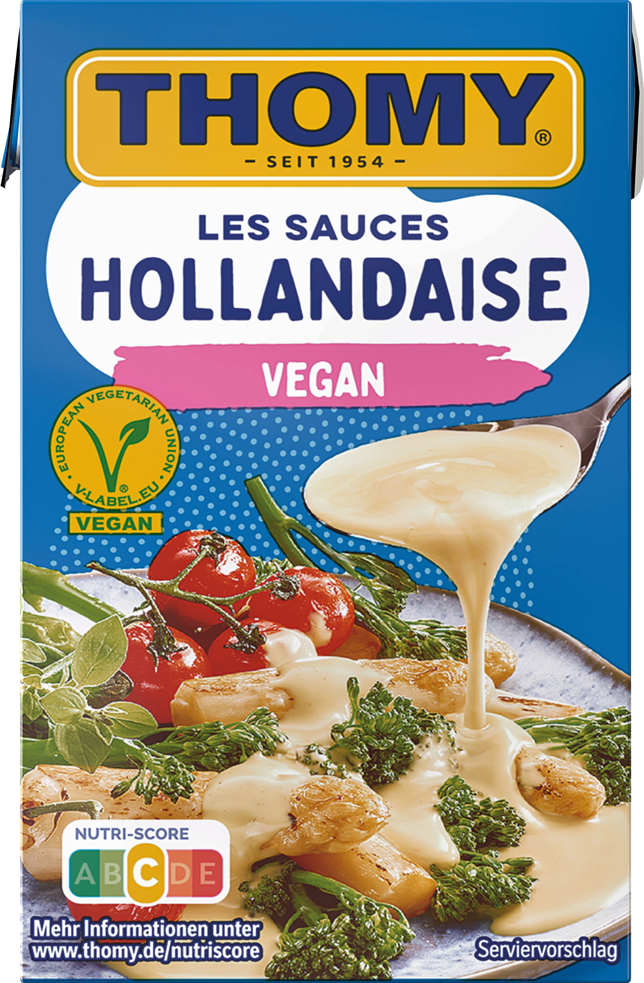 Mit der veganen THOMY Hollandaise-Sauce bringst du cremigen Genuss auf den Tisch – perfekt für Spargel, Fisch oder Gemüse wie Karfiol und Brokkoli. Die Sauce überzeugt durch einfache und schnelle Zubereitung, egal ob im Topf oder in der Mikrowelle.