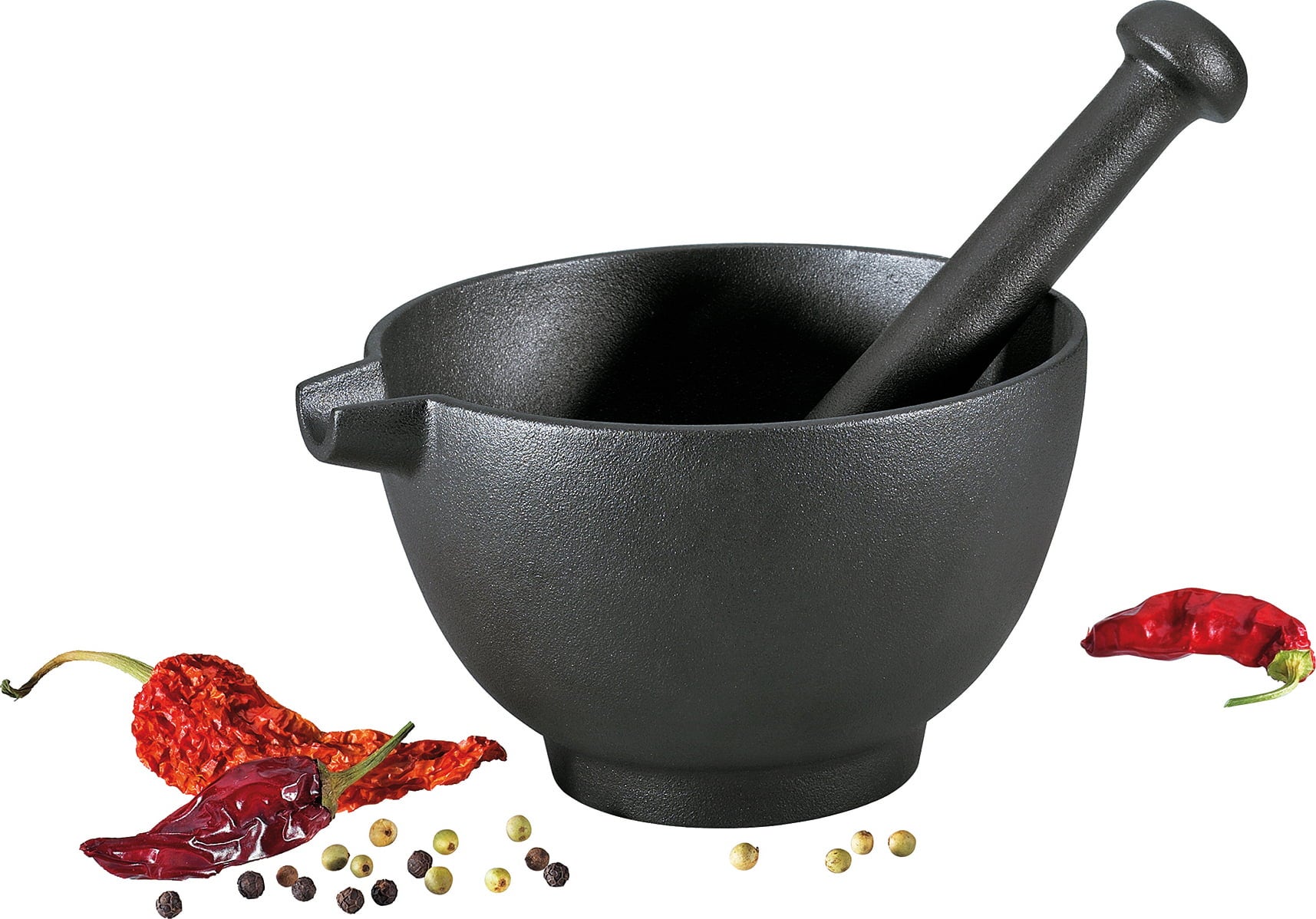 Der Mörser XL von Zassenhaus ist ein echtes Schwergewicht – im besten Sinne. Aus massivem Gusseisen gefertigt, überzeugt er durch Stabilität und Effizienz beim Zerkleinern großer Mengen. Dank seiner rauen Oberfläche entfalten Kräuter und Gewürze ihr volles Aroma, während der praktische Ausgießer das Umfüllen erleichtert. Ob Pesto, Gewürzöl oder Kräuterpaste – mit diesem Mörser gelingt alles mühelos und stilvoll.