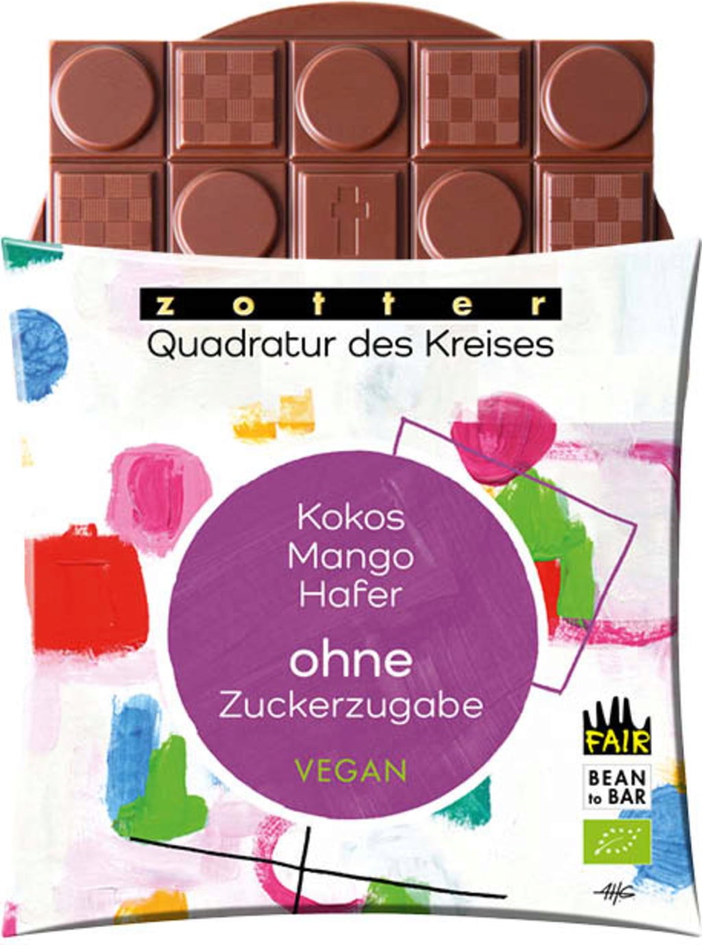 Zotter Schokoladen Bio Quadratur des Kreises Kokos Mango Hafer ohne Zuckerzugabe, 70 g