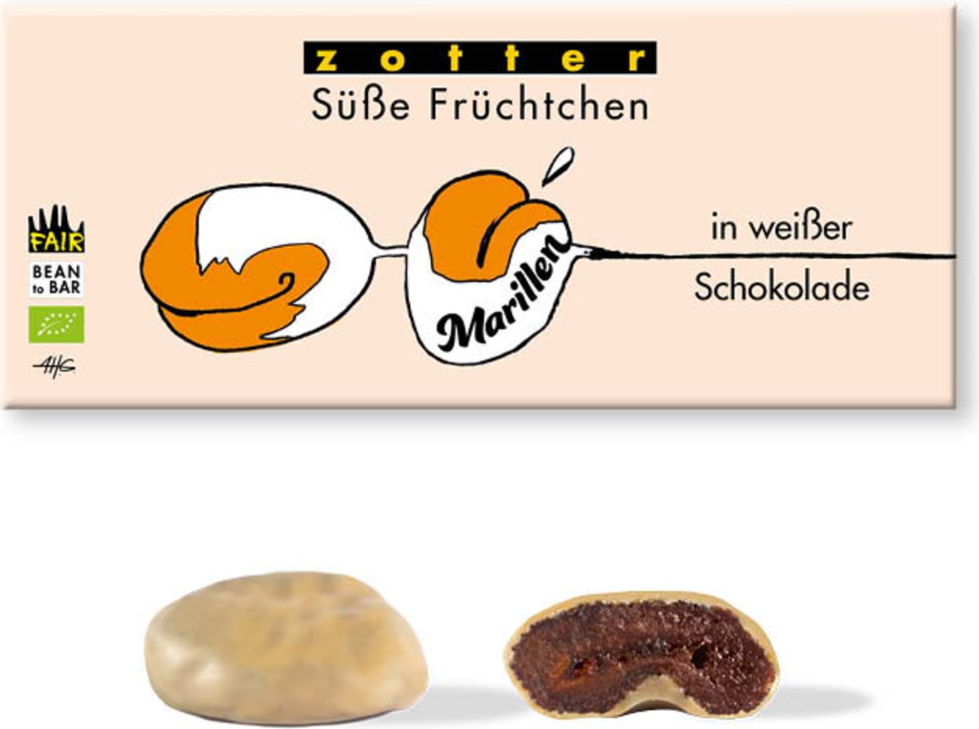 Zotter Schokoladen Marillen in weißer Schokolade, 80 g