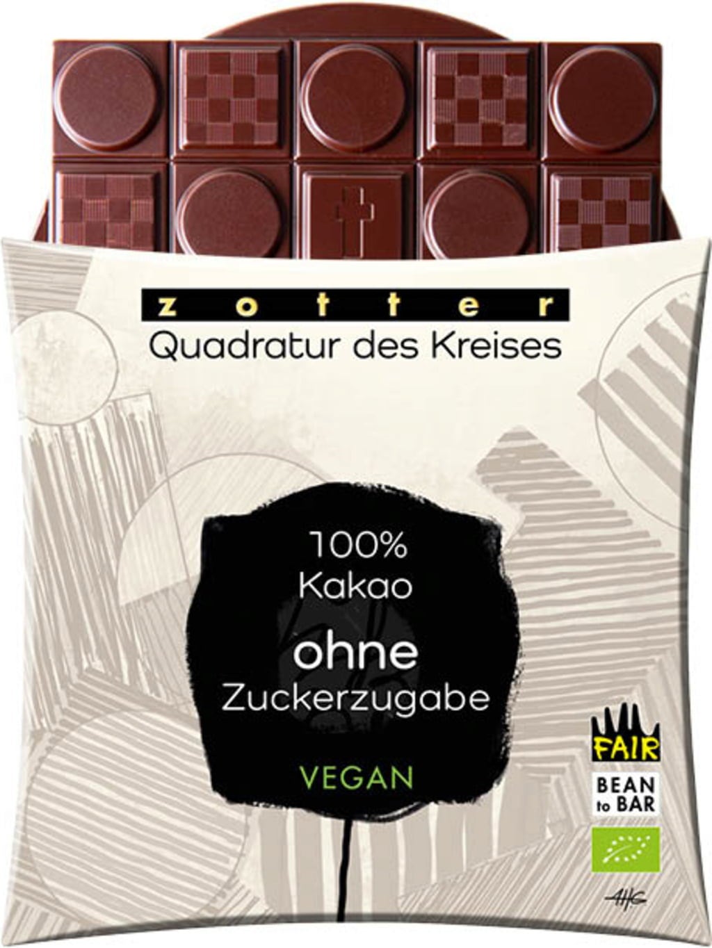 Zotter Schokoladen Bio Quadratur des Kreises 100% Dunkle Schoko ohne Zucker, 70 g